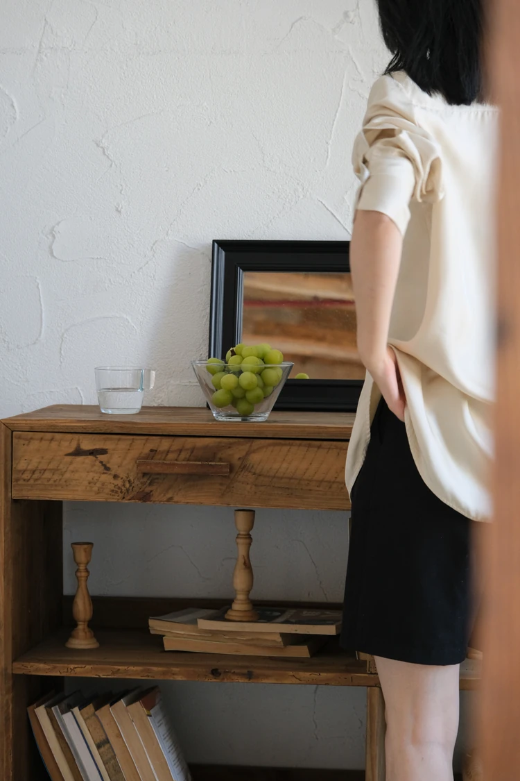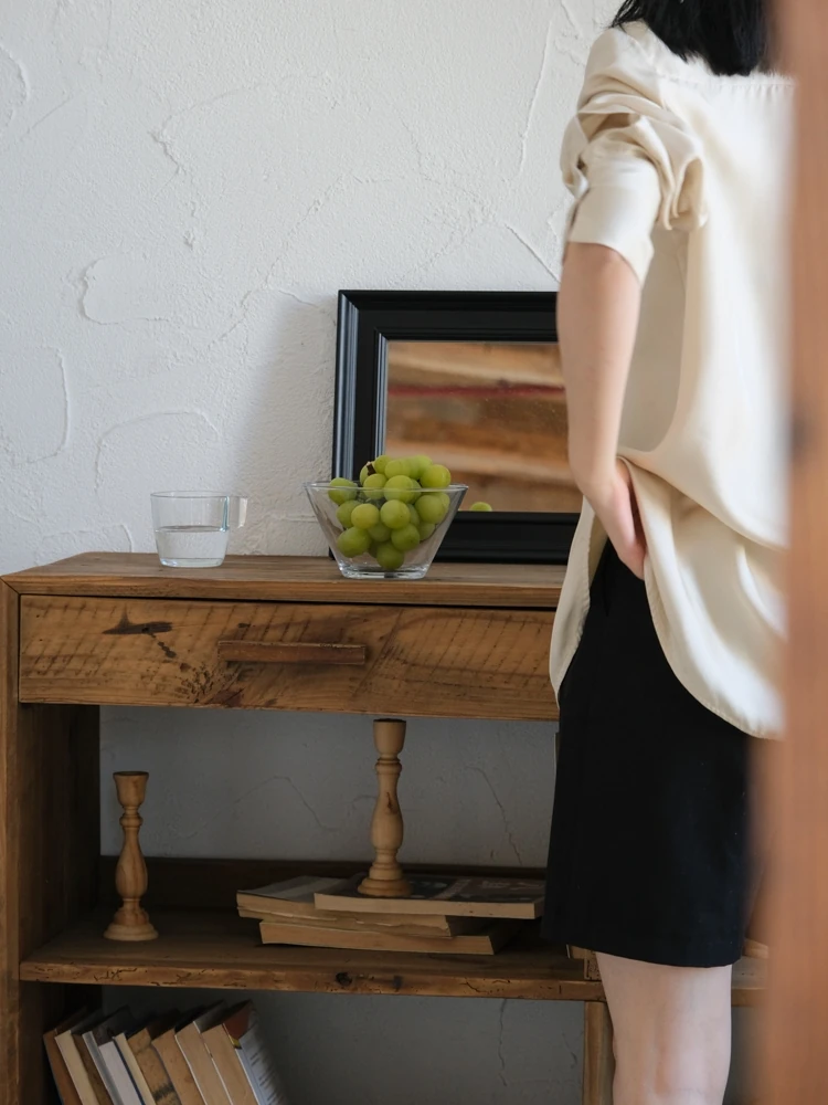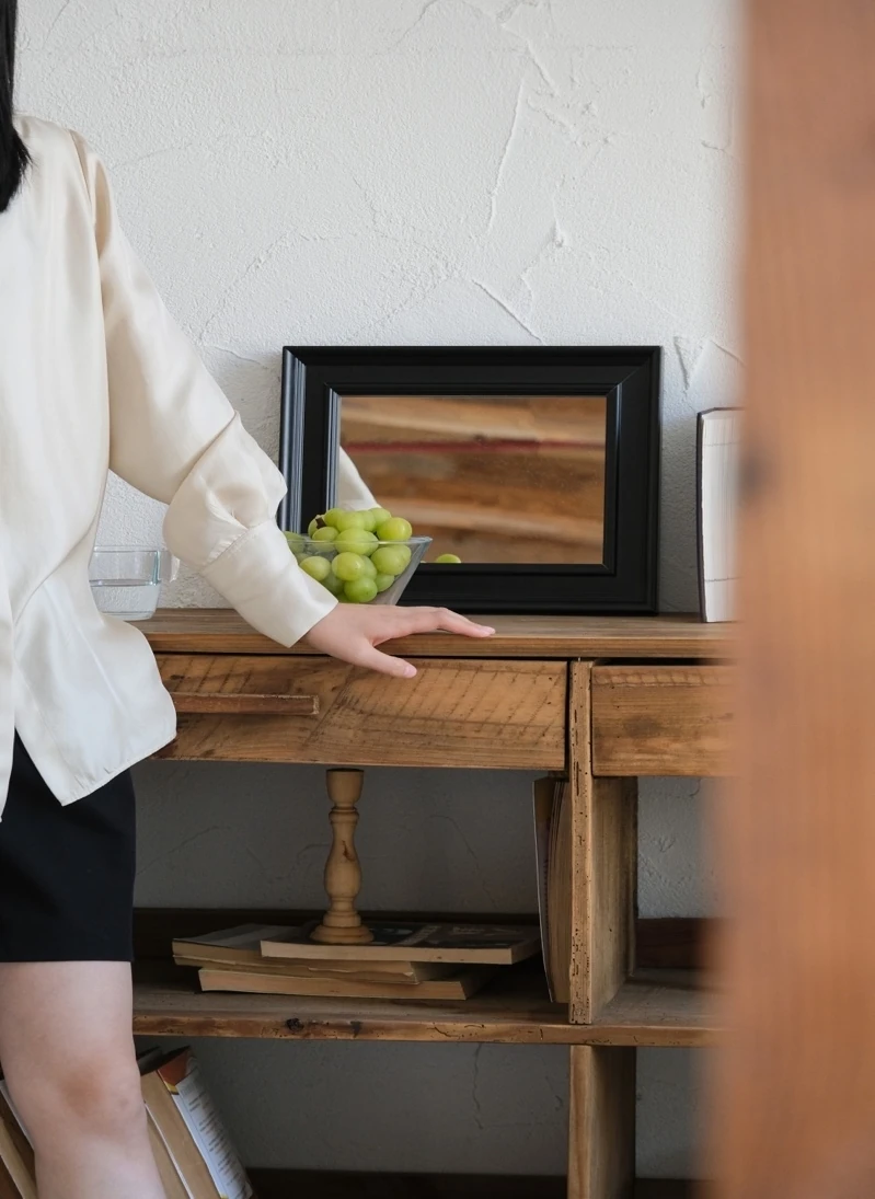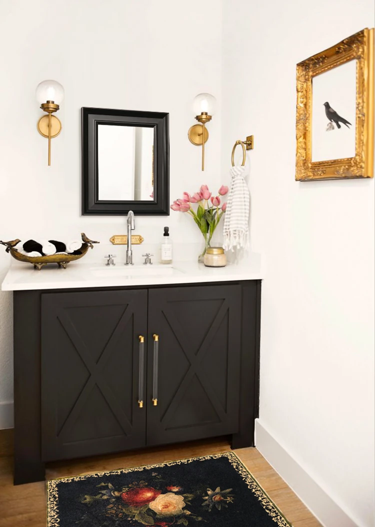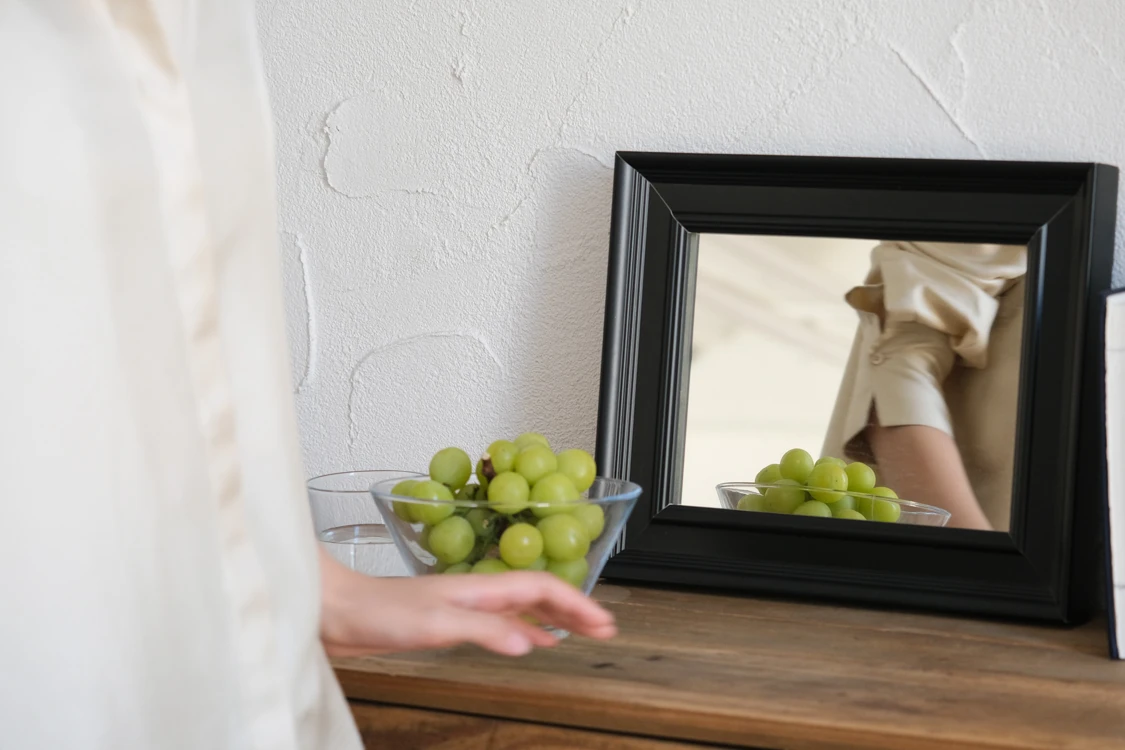 Rona Oriental Series Black Pine Framed Entryway Mirror - Elegant Bathroom & Vanity Decor, Stylish Half-Length Hanging Artwork Mirror