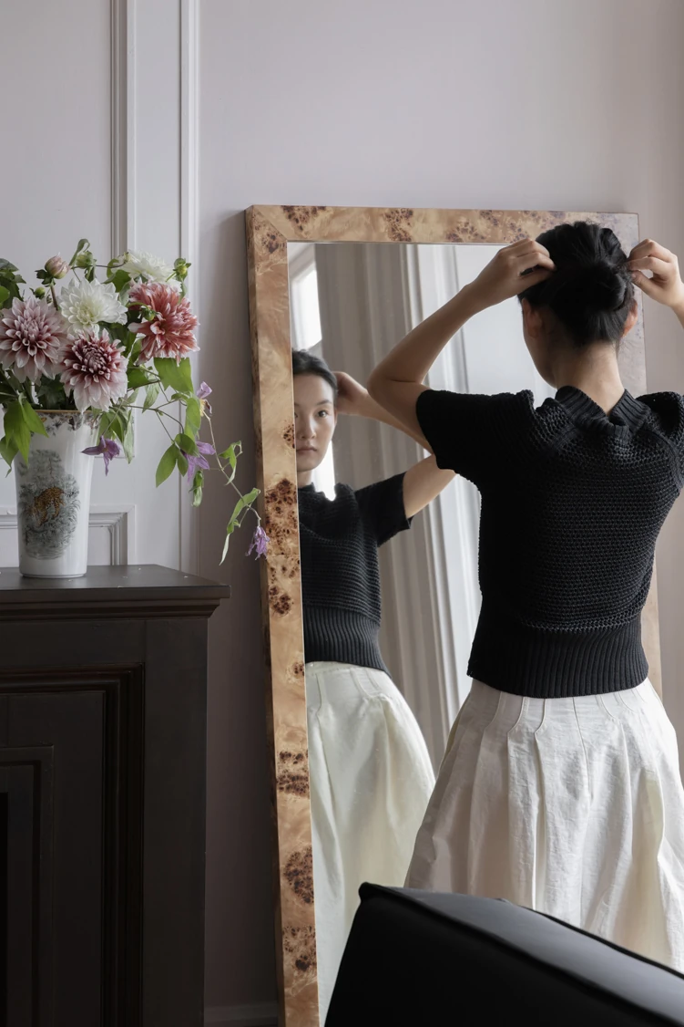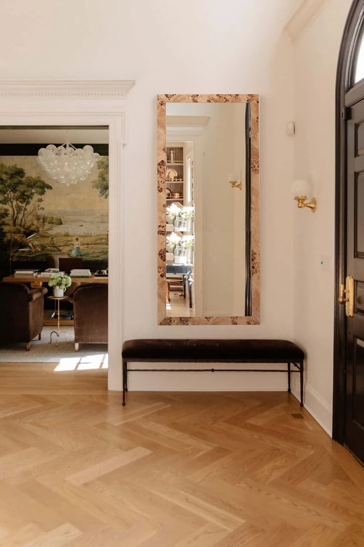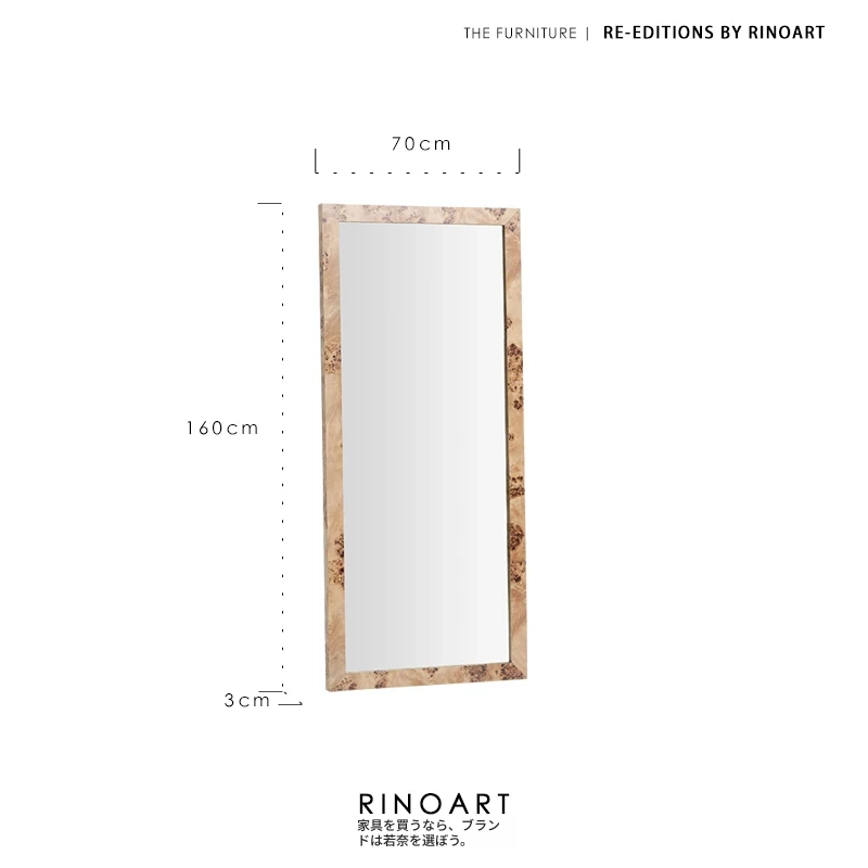 若奈家具 イタリア産 桃花心木の木目調 立て掛け全身鏡 クローゼット用 玄関で使える 衣装鏡 壁掛け可能 すっきりとしたデザインでお部屋をおしゃれに演出!