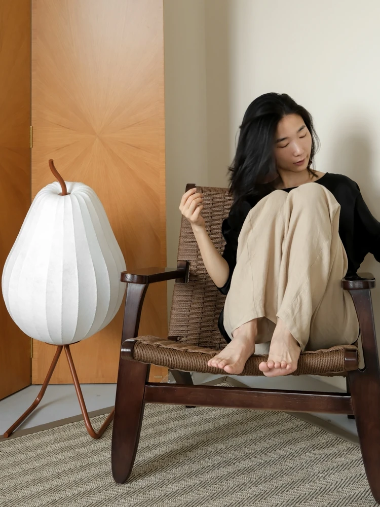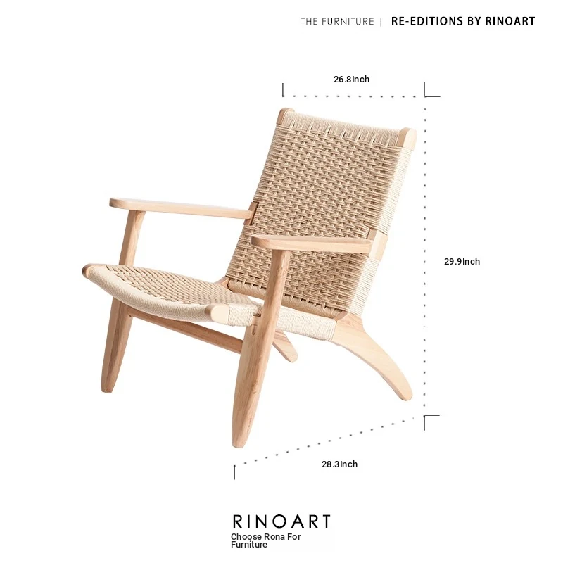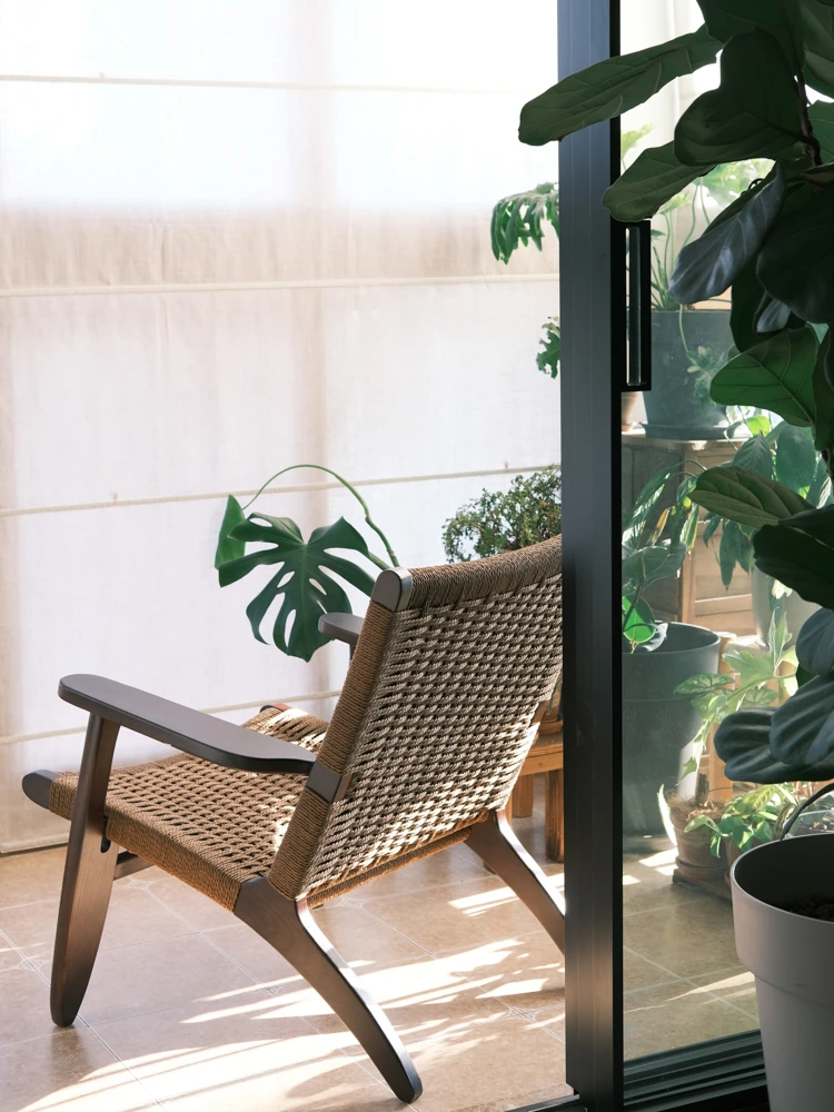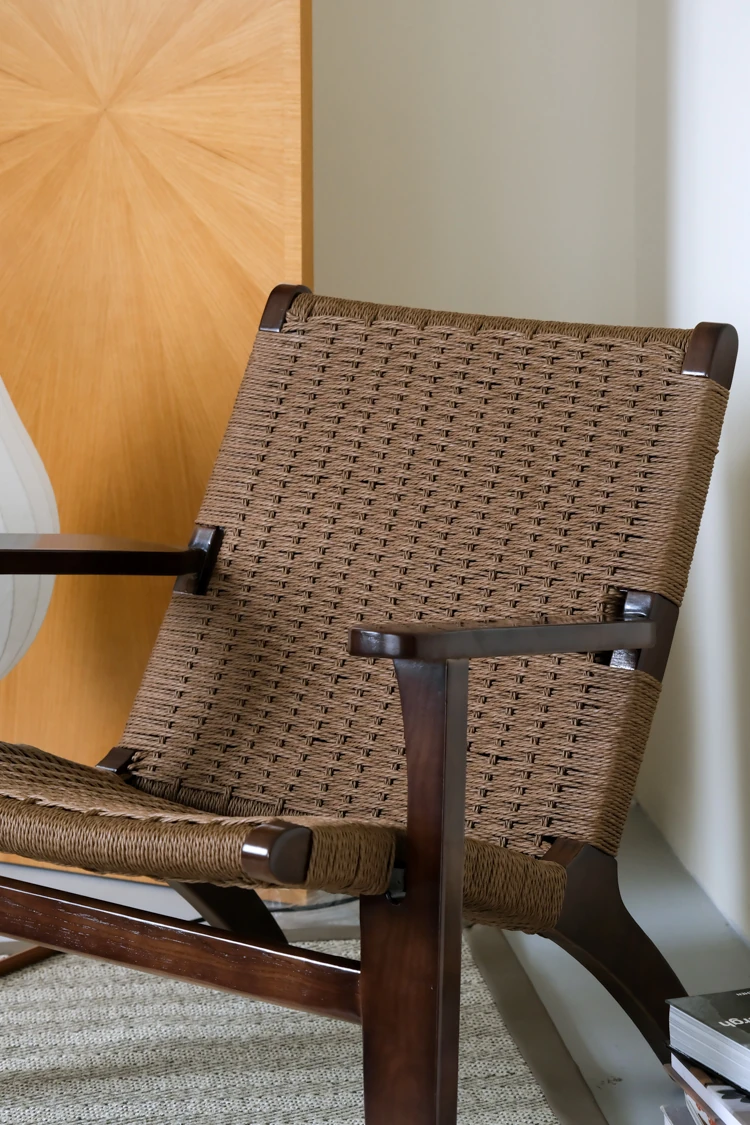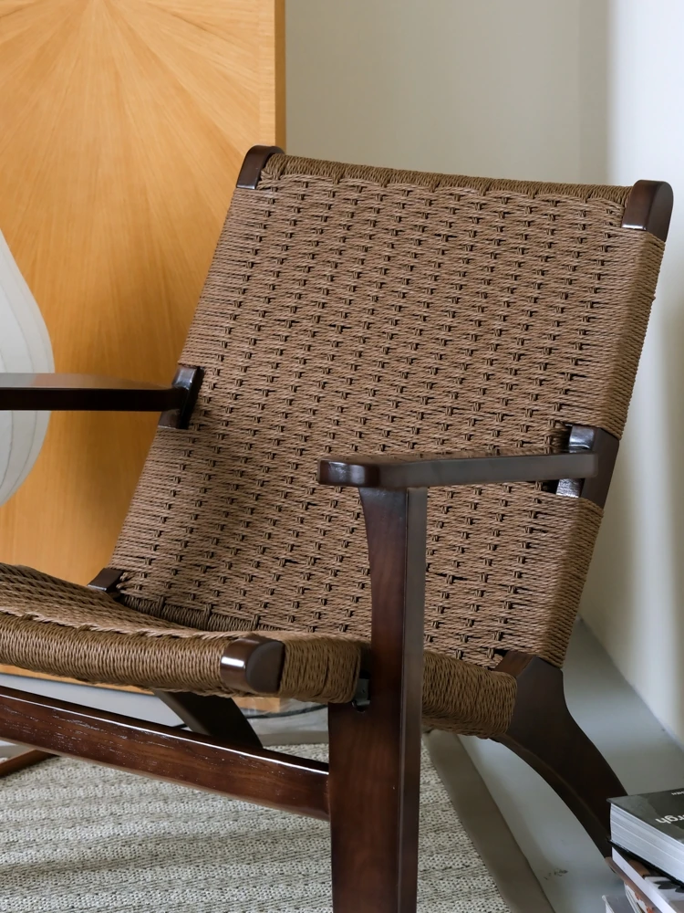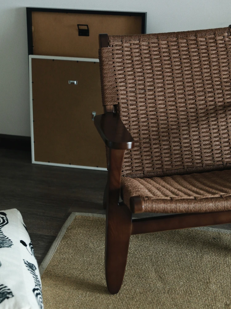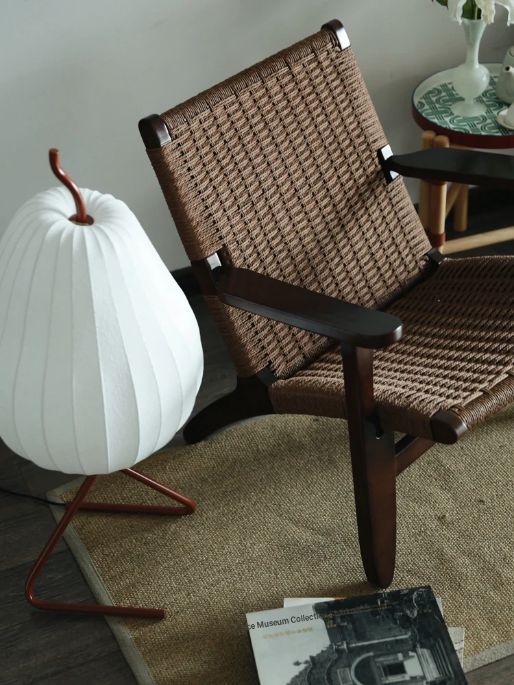 若奈 デンマーク風 中古パドルチェア ホワイトアッシュウッド 手作りロープ編み シングルアウトドアリラックスチェア 読書に最適!