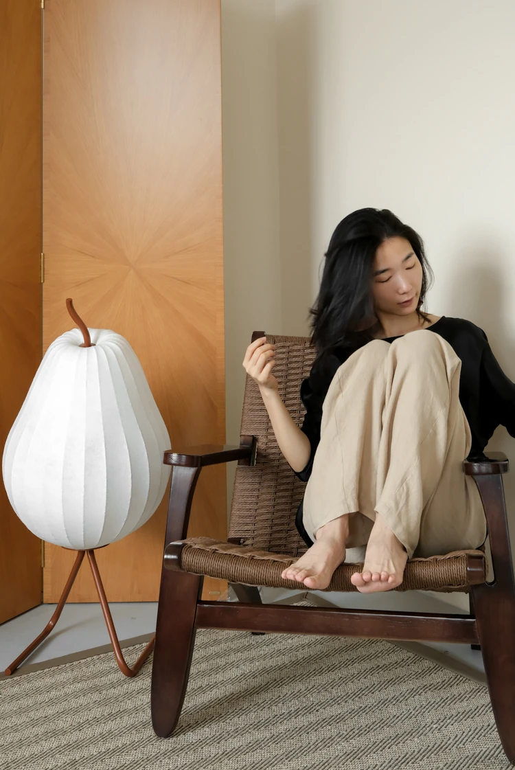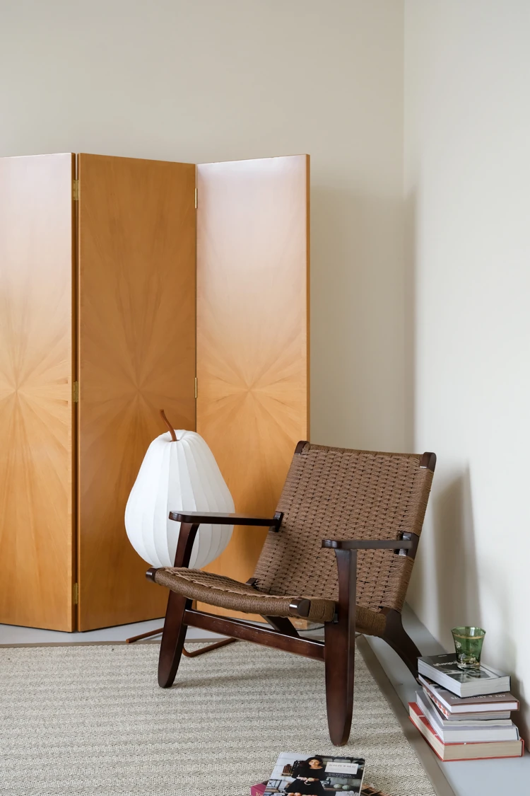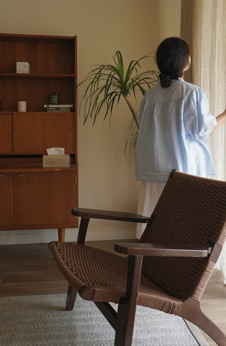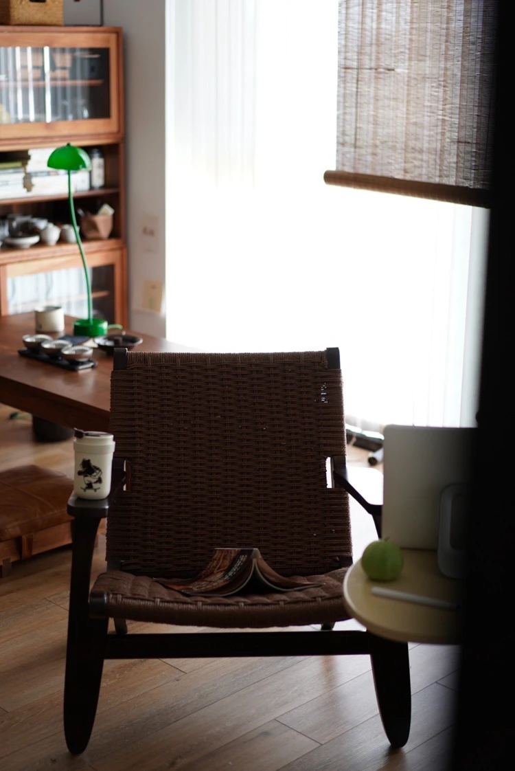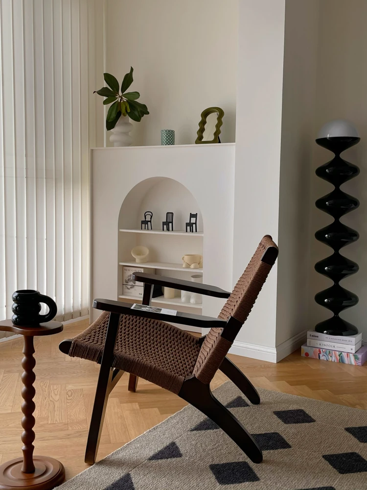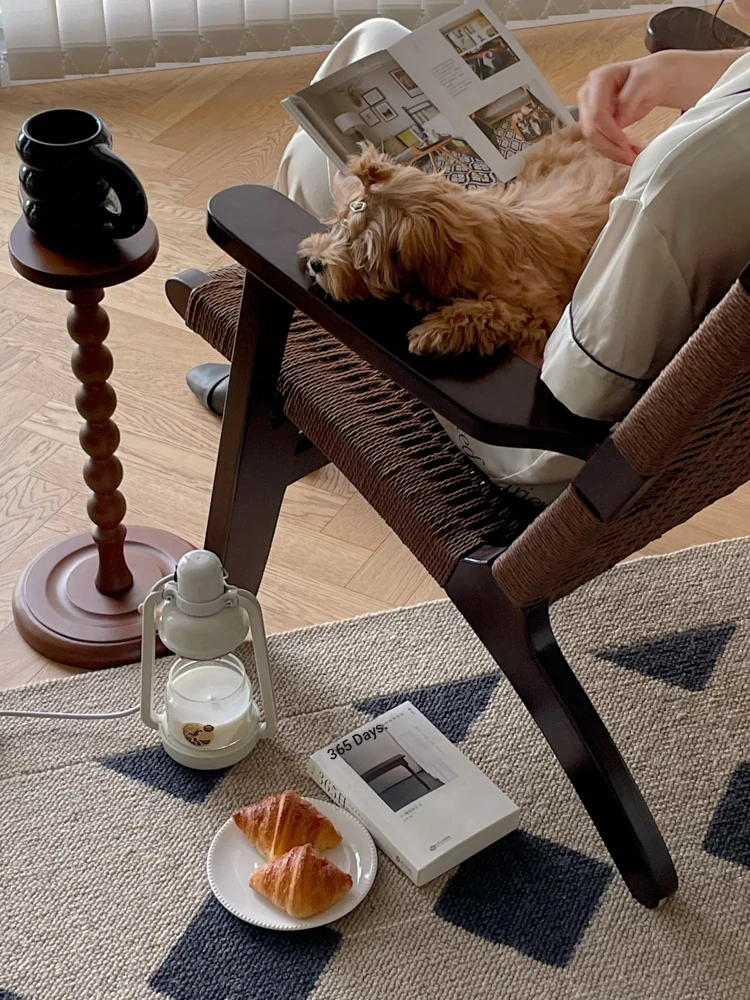 若奈 デンマーク風 中古パドルチェア ホワイトアッシュウッド 手作りロープ編み シングルアウトドアリラックスチェア 読書に最適!