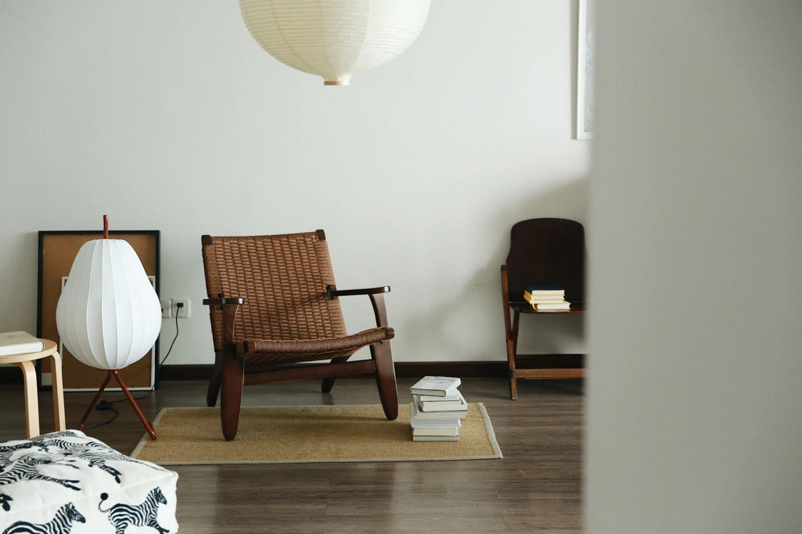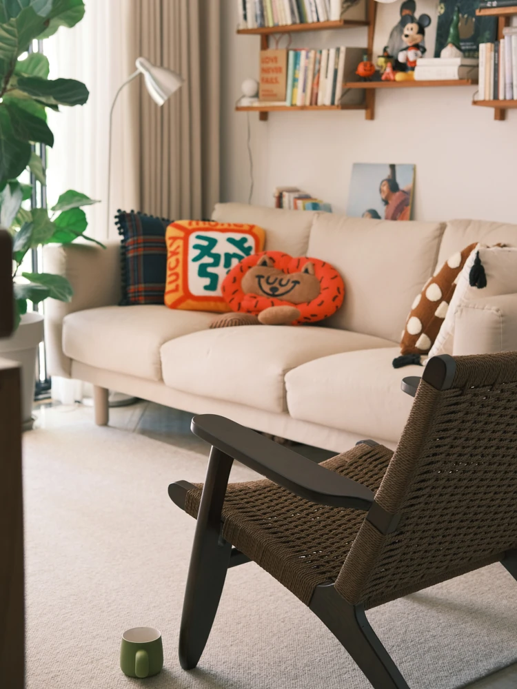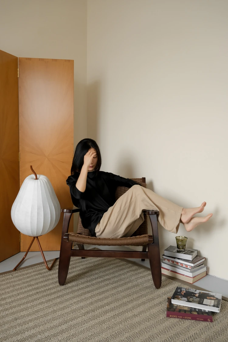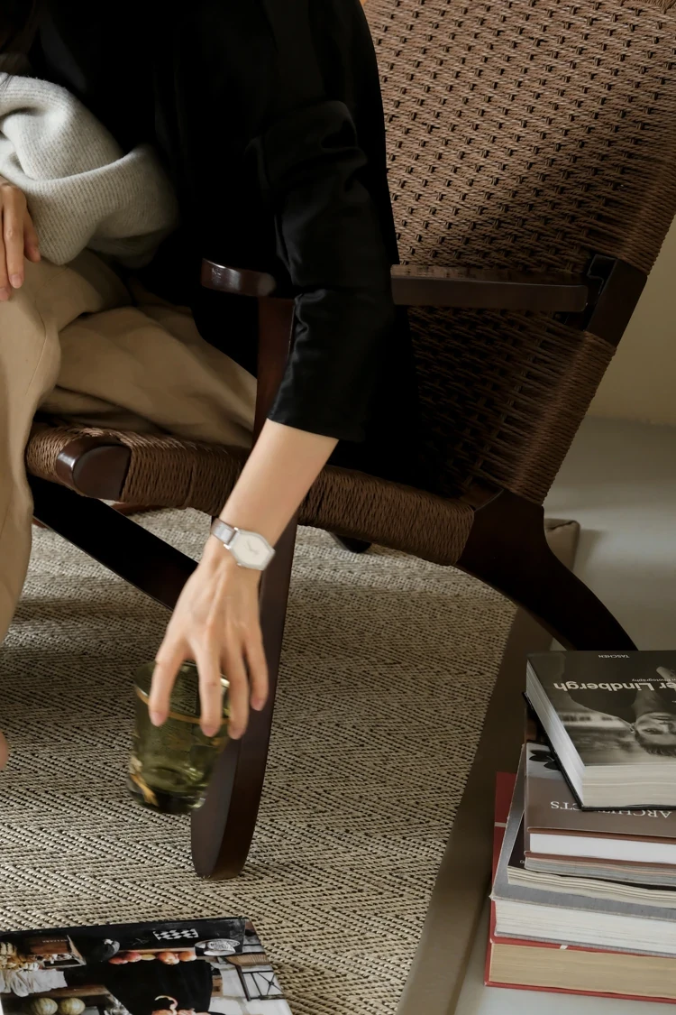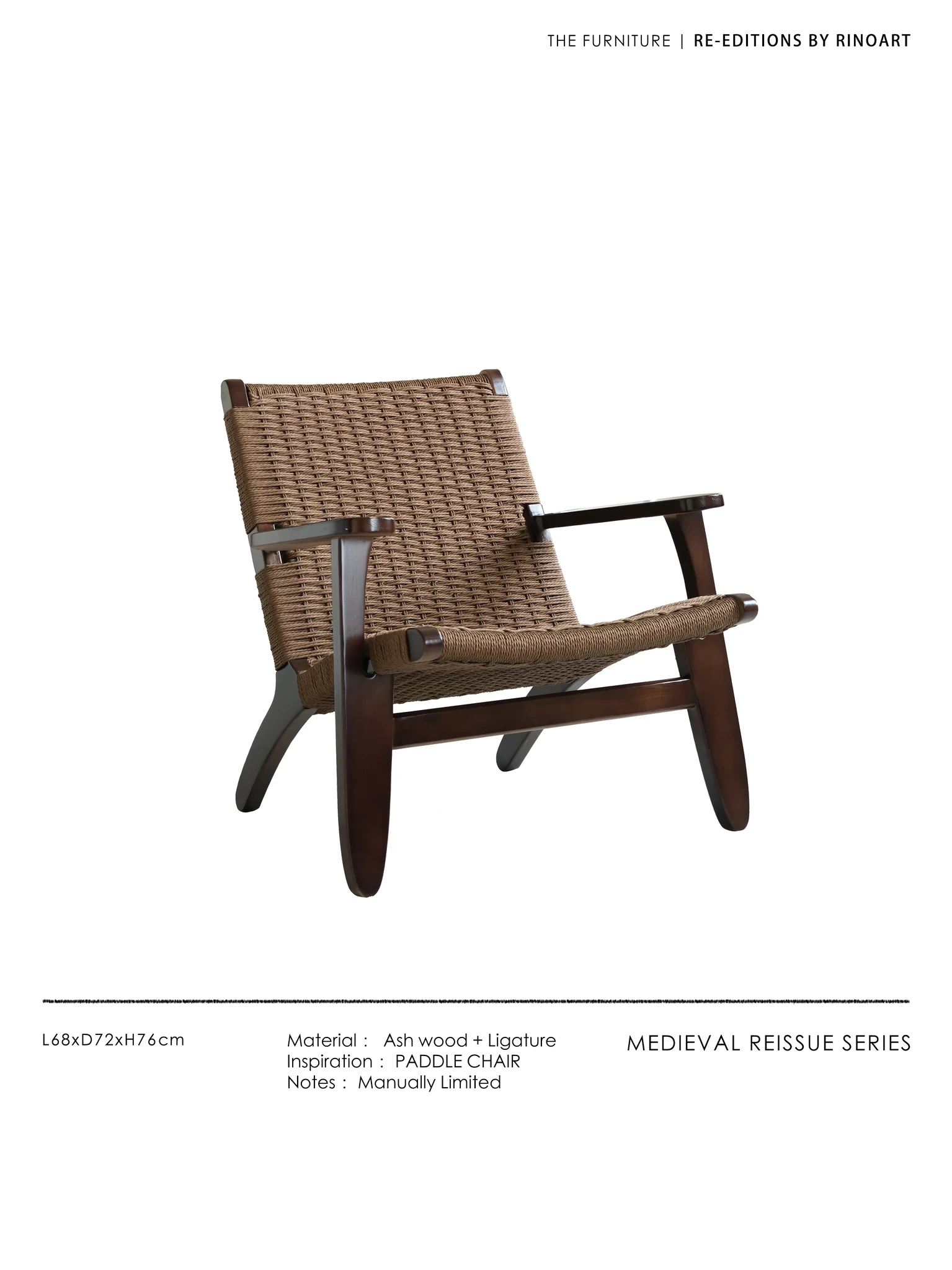 若奈 デンマーク風 中古パドルチェア ホワイトアッシュウッド 手作りロープ編み シングルアウトドアリラックスチェア 読書に最適!