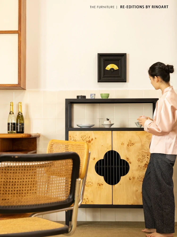 若奈家具 3倍収納!東方文房「九宮厨」ブラックウォールナット色の無垢材サイドキャビネット収納キャビネット