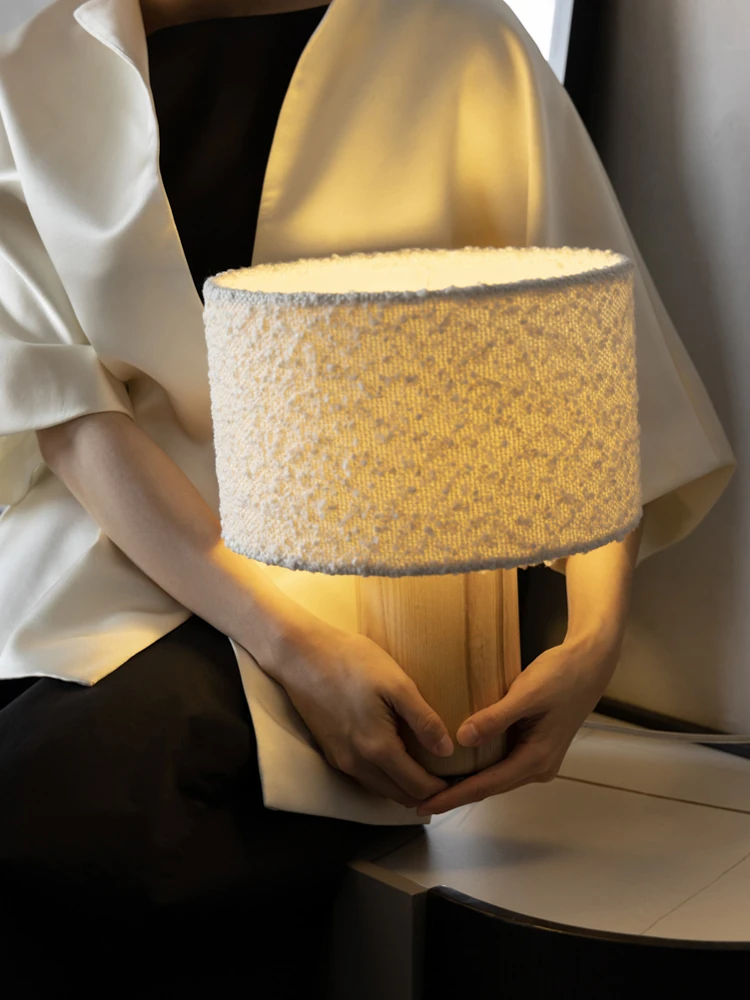 若奈家具のクワイエットラグジュアリー「柔らかな雲」ベッドサイドランプ - ホワイトアッシュ材、クリーミーホワイト、目に優しいデザインで、心地よい眠りをサポートします。