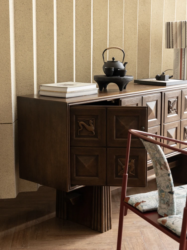 若奈家具 イタリア製 レトロ彫刻 サイドボード 橡木無垢材 大容量収納キャビネット ワインキャビネット 使い勝手抜群の美しいデザイン!お部屋をおしゃれに彩る一品。